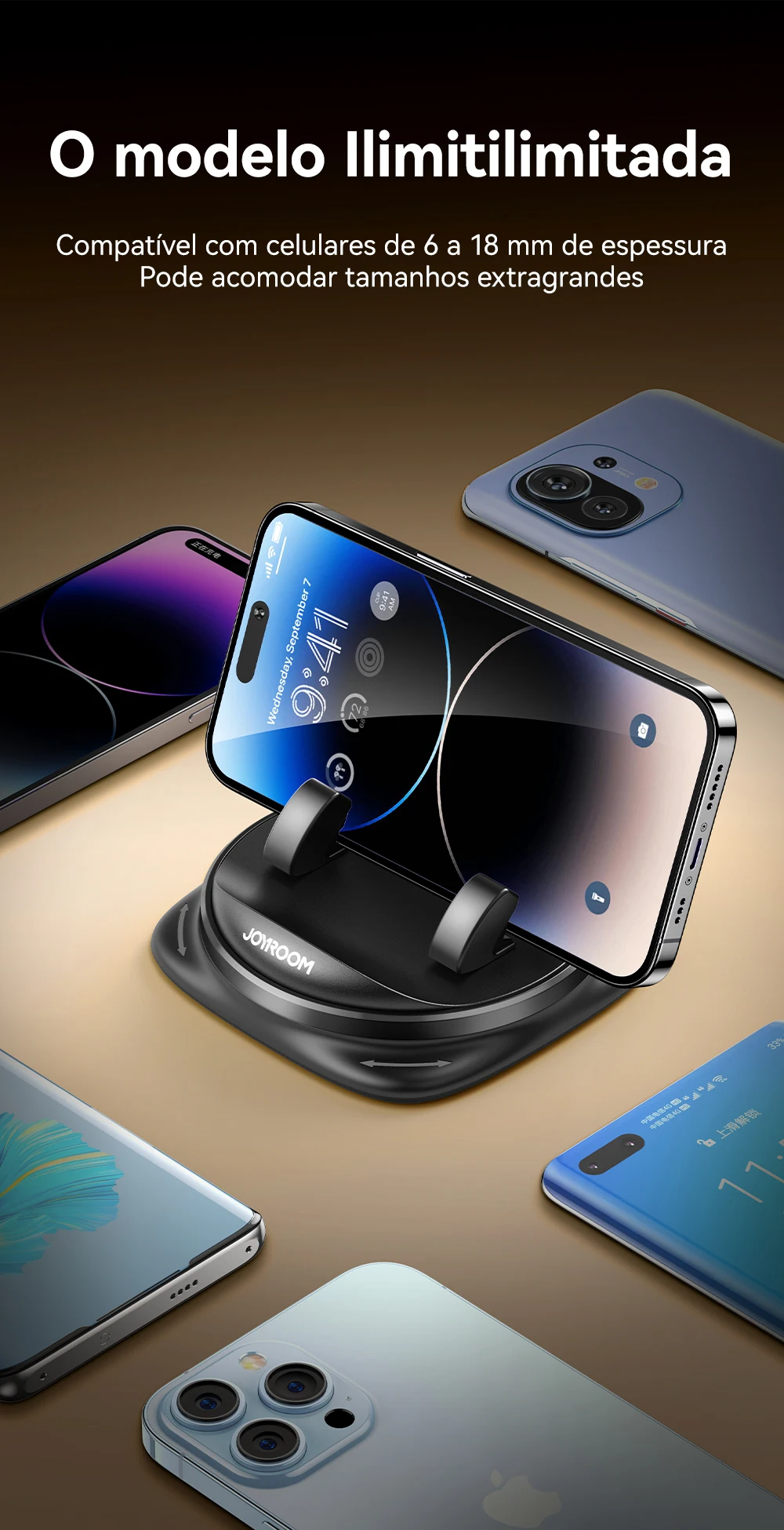 Compatibilidade: Telefones entre 6mm e 18mm (com ou sem capa)